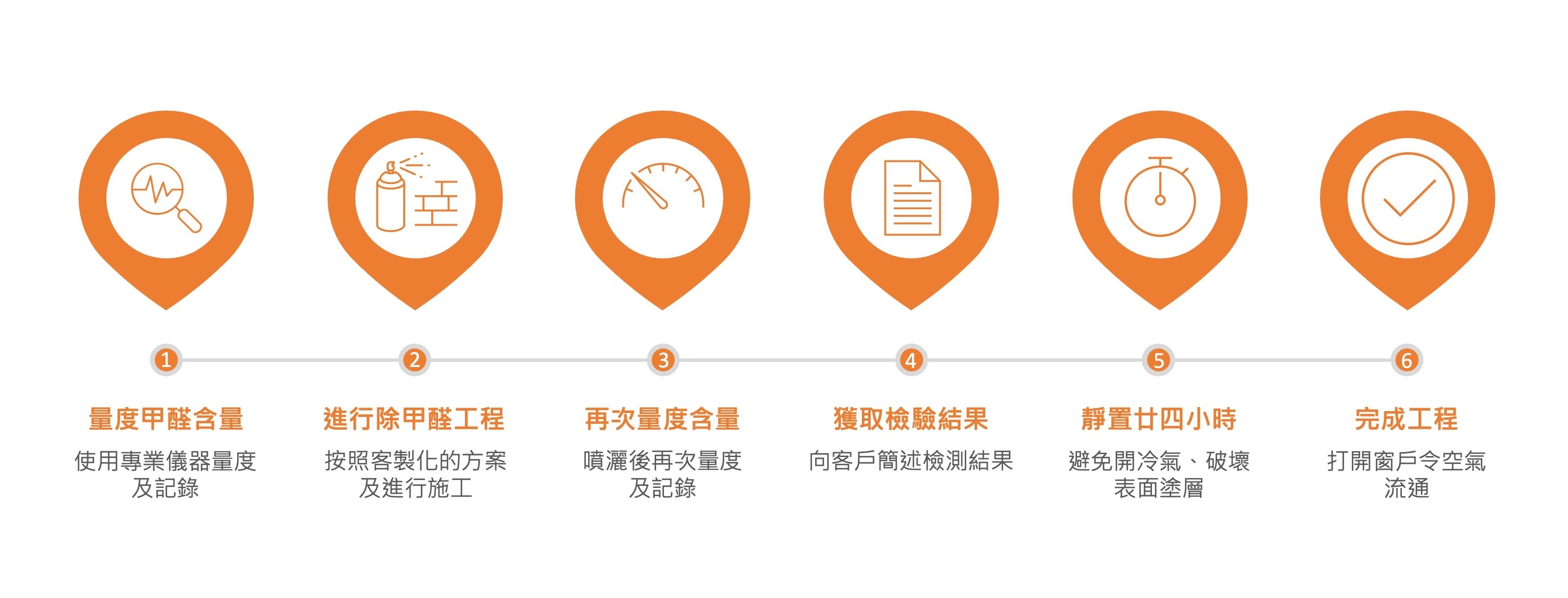- 除甲醛施工完成後,將再次進行測試,並向客人簡述結果;